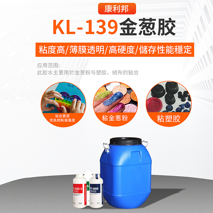 KL-139金蔥膠是用丙烯酸單體.用乳(rǔ)液聚合法聚合而(ér)成的強粘力乳液,具有(yǒu)粘(zhān)度高(gāo)、薄膜透明、高硬度、儲(chǔ)存性能穩定(dìng)等(děng)優良(liáng)特性(xìng),耐熱性也優(yōu)於其他白膠(jiāo),KL-139金蔥膠應(yīng)用範圍廣,無毒環保,對皮膚無(wú)不良作用。