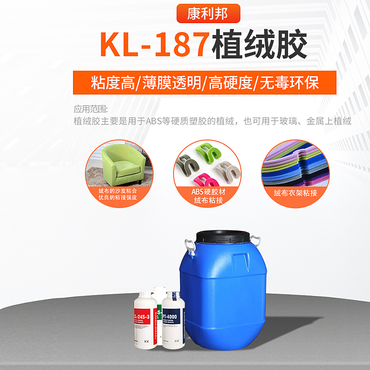 KL-187植絨膠是以多(duō)種丙(bǐng)烯酸單體.用乳液聚合(hé)法(fǎ)聚合(hé)而成的強粘力乳液,具有粘度高、薄膜透明、高硬度、儲存性(xìng)能穩定等優良特性,耐熱性也優於其(qí)他(tā)白膠,KL-187植絨膠應用範圍廣,無毒環保,對(duì)皮膚無不良作用。