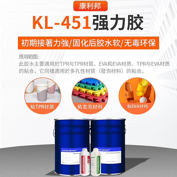 KL-451強力膠是一種由低(dī)分子(zǐ)量樹脂、芳香烴化合物組成的一種溶劑型(xíng)粘合劑(jì),它具有初期粘合力強(qiáng),抗老化(huà)性能強,表幹時間快等優點.